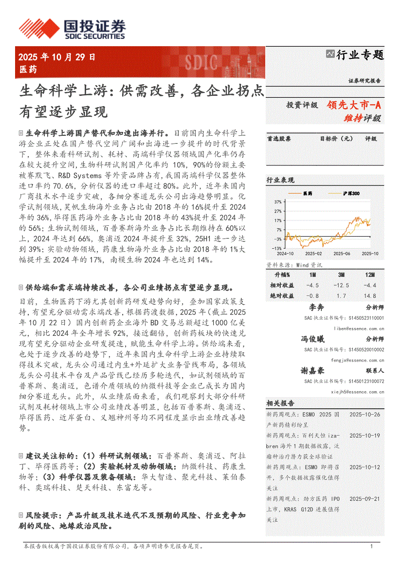 医药行业:国投证券-医药行业专题:生命科学上游,供需改善,各企业拐点有望逐步显现-251029