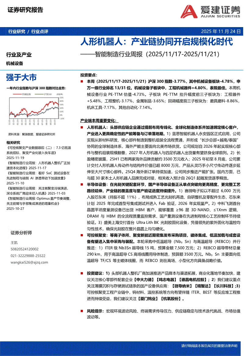 智能制造行业:爱建证券-智能制造行业周报:人形机器人,产业链协同开启规模化时代-251124
