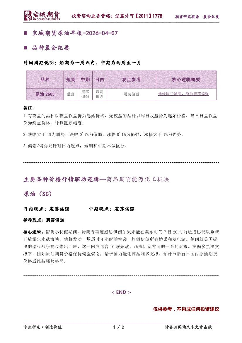 宝城期货-原油周报:地缘风险支撑,原油高位震荡-260403