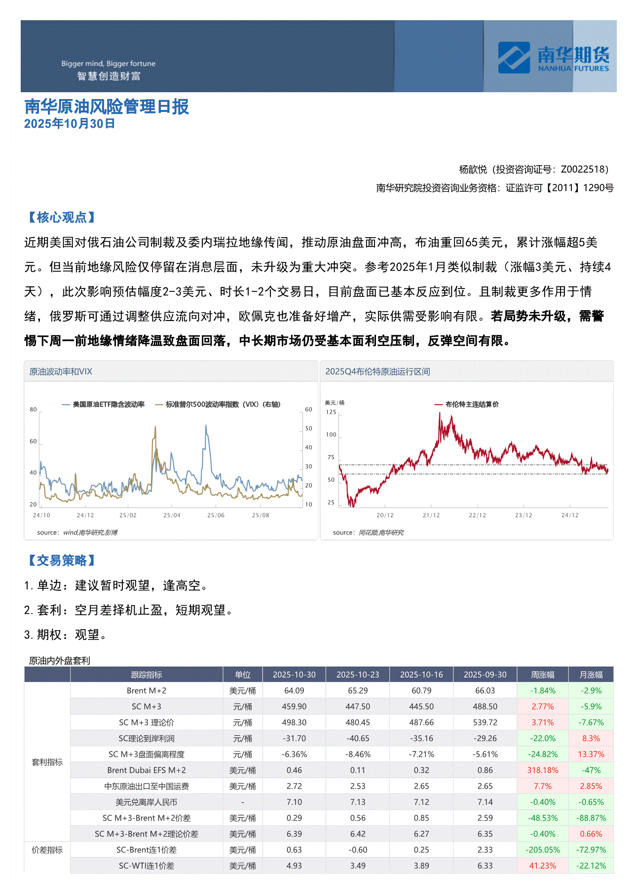 南华期货-原油产业周报:短期地缘利好,警惕回落风险-251027