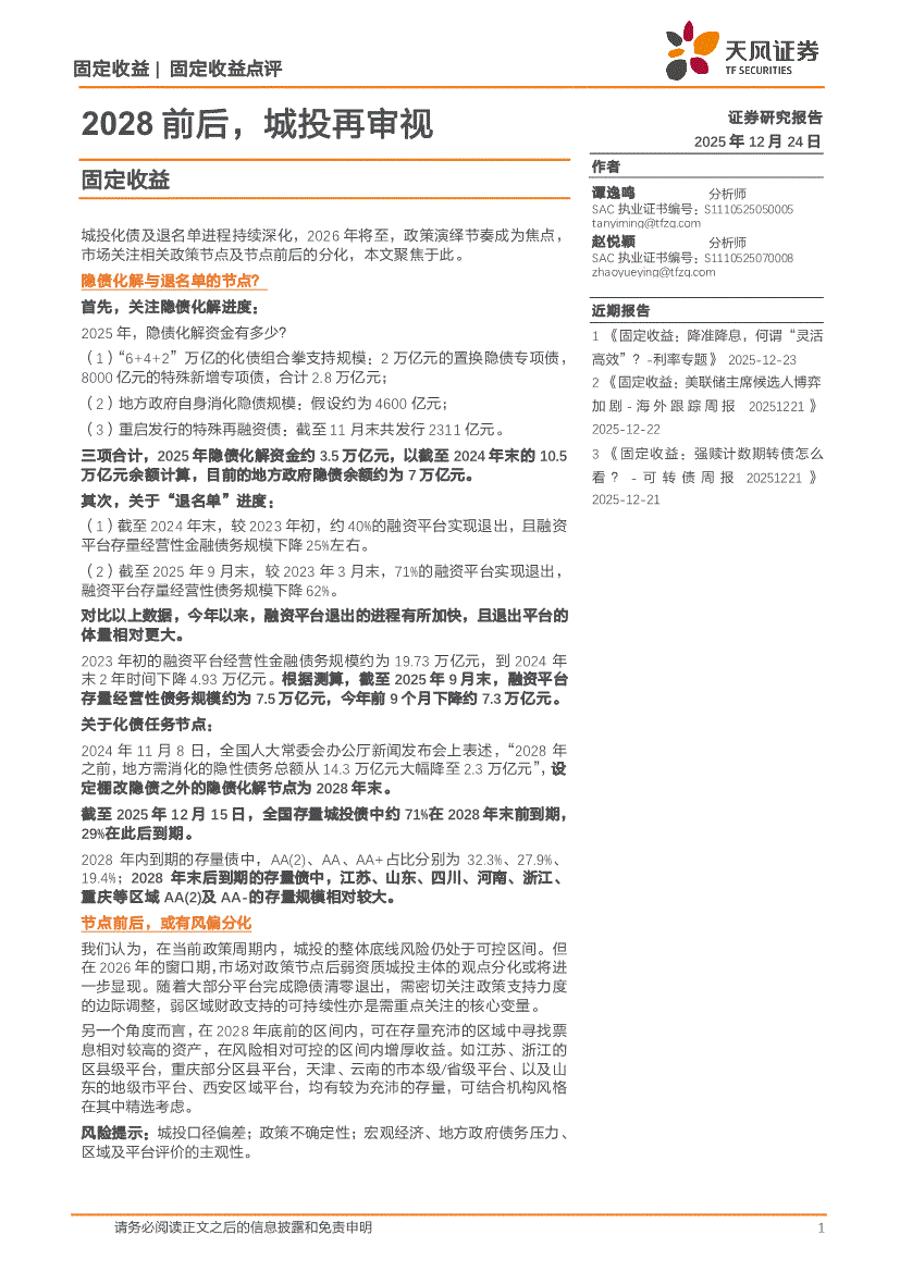 天风证券-2026市场展望·城投债篇:2026,经纬擘画,城投新篇-251206