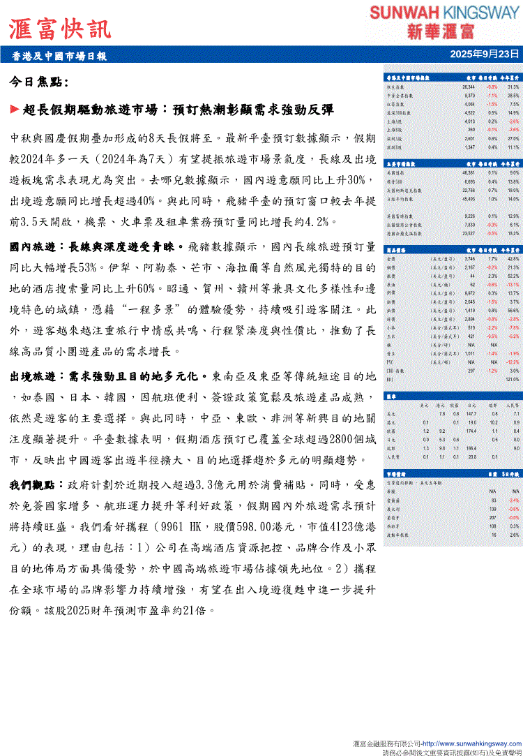 新华汇富-滙富快訊:香港及中国市场日报-250923