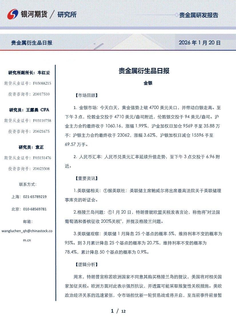 银河期货-贵金属衍生品日报-260120