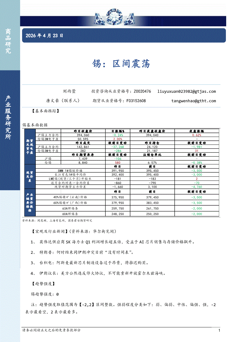 国泰君安期货-黄金:地缘政治局势缓解,白银,震荡回升-260423