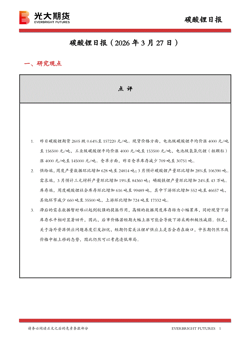 光大期货-碳酸锂日报-260327