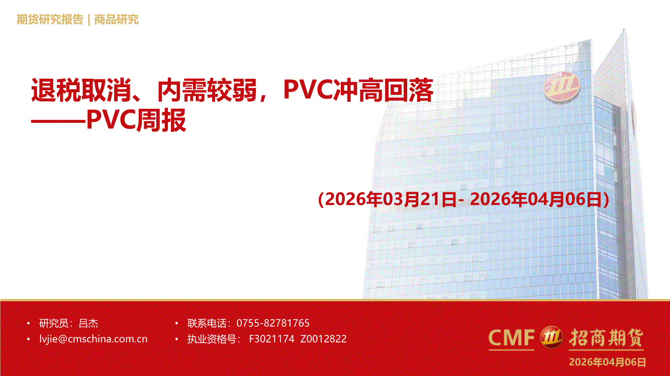招商期货-PVC周报:退税取消、内需较弱,PVC冲高回落-260406