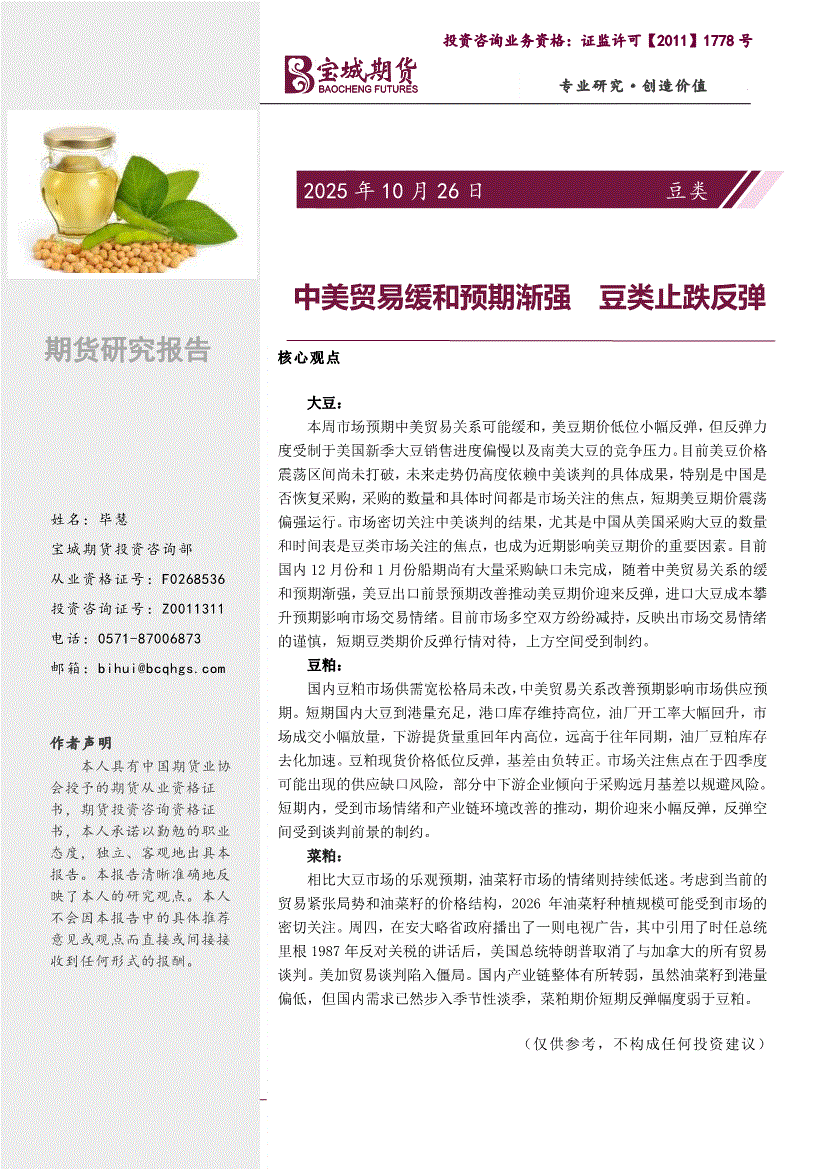 宝城期货-豆类周报:中美贸易缓和预期渐强,豆类止跌反弹-251026
