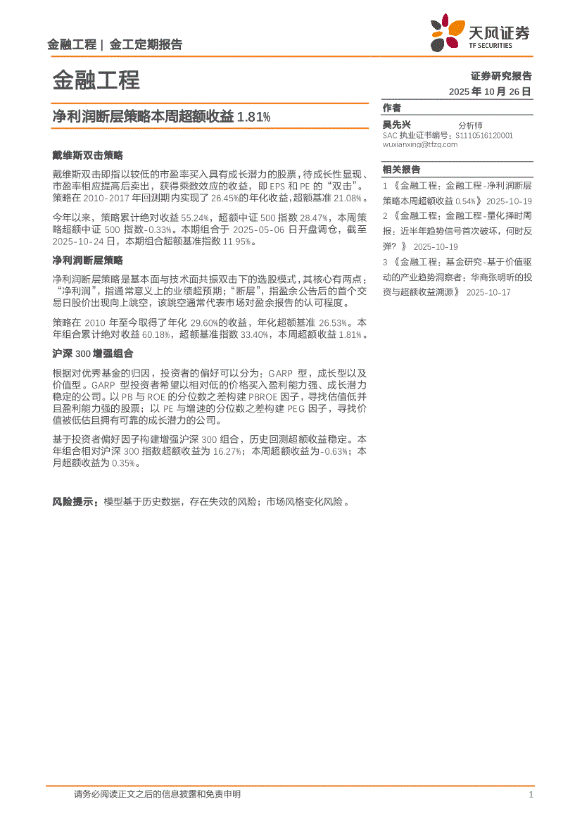 天风证券-净利润断层策略本周超额收益1.81%-251026