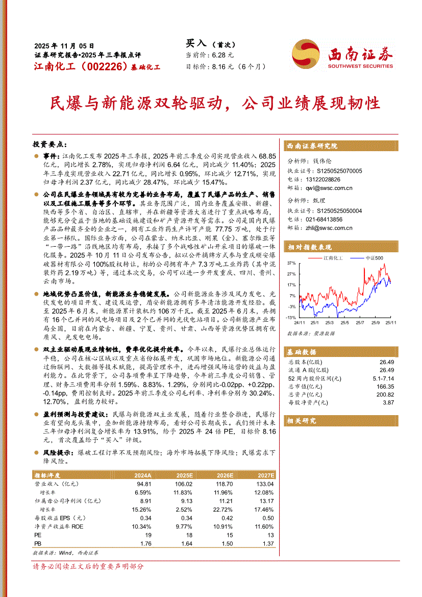 江南化工:西南证券-江南化工-002226-民爆与新能源双轮驱动,公司业绩展现韧性-251105