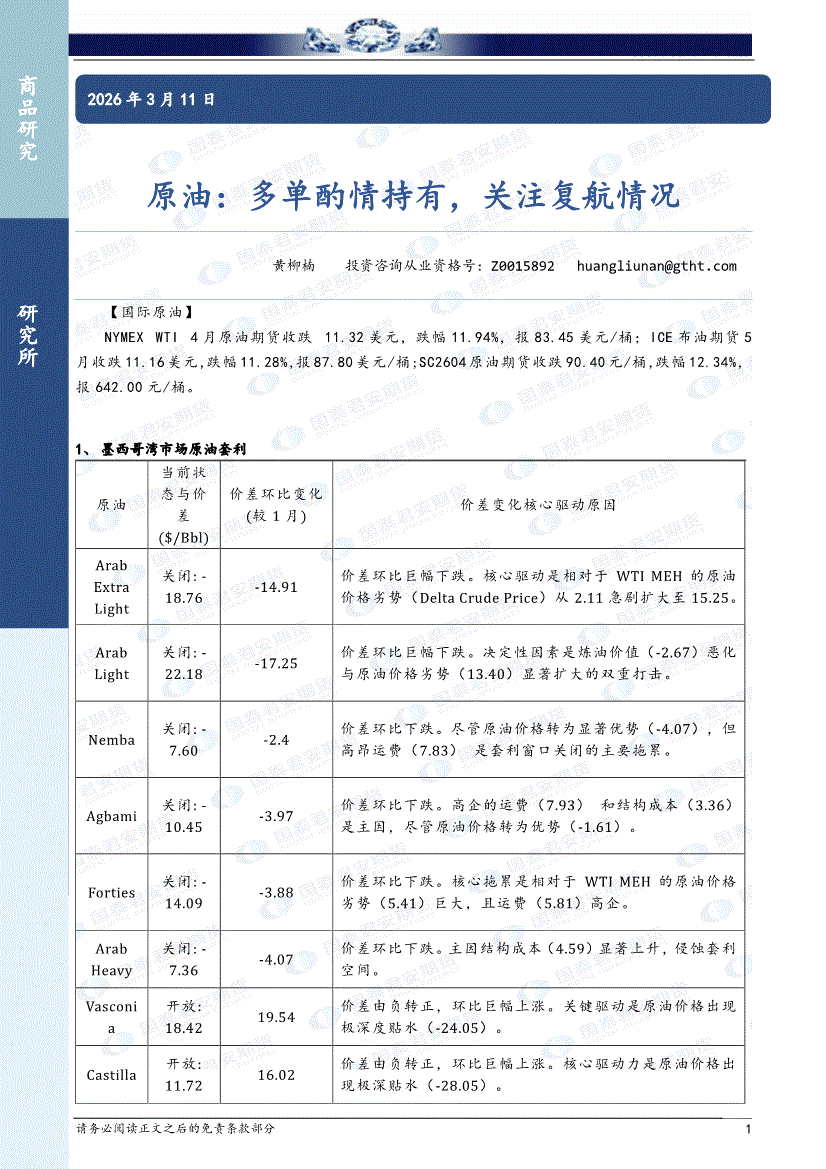 国泰君安期货-原油:多单酌情持有,关注复航情况-260311