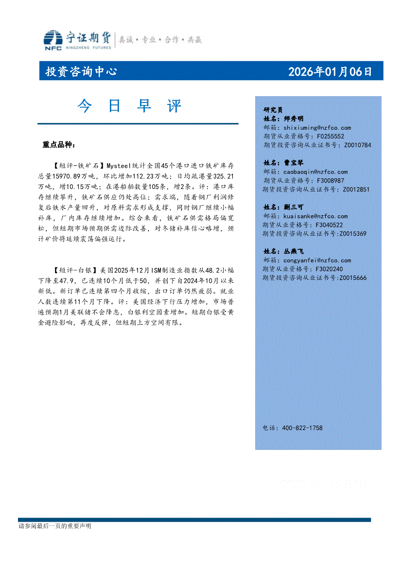 宁证期货-今日早评-260106