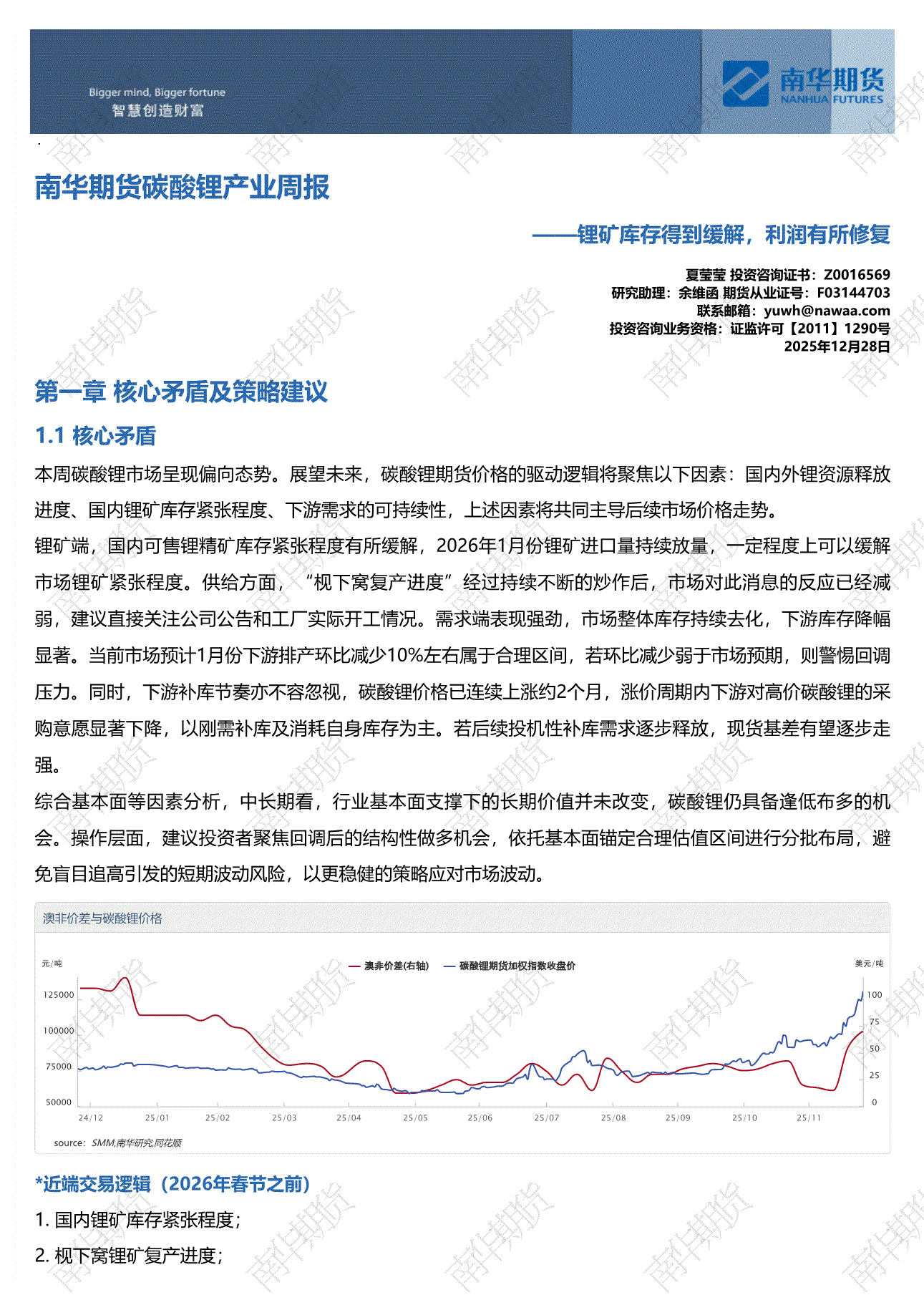 南华期货-碳酸锂产业周报:锂矿库存得到缓解,利润有所修复-251228