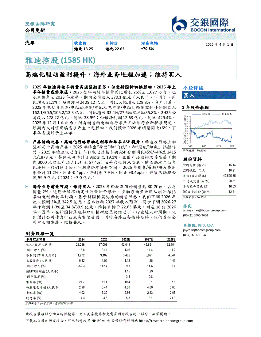 雅迪控股:交银国际-雅迪控股-1585.HK-高端化驱动盈利提升,海外业务进程加速;维持买入-260401