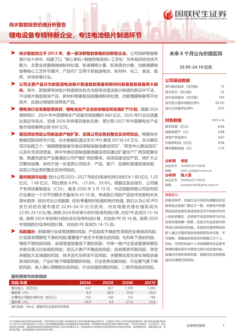 尚水智能:国联民生证券-尚水智能-301513-投资价值分析报告:锂电设备专精特新企业,专注电池极片制造环节-260327