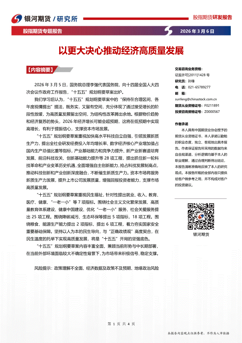 银河期货-股指期货专题报告:以更大决心推动经济高质量发展-260306