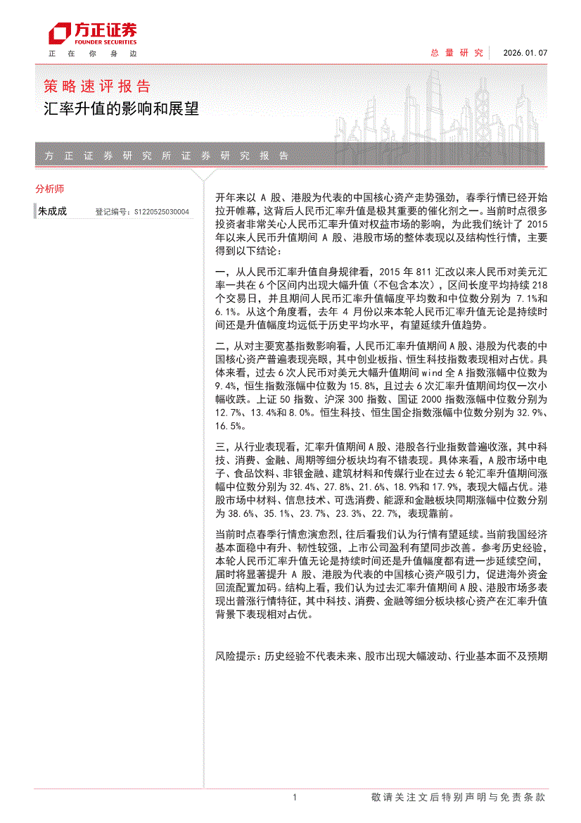 方正证券-策略速评报告:汇率升值的影响和展望-260107