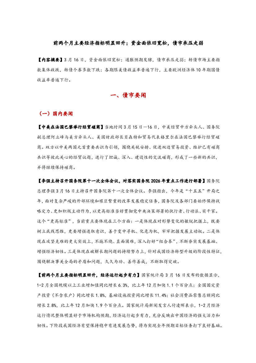 东方金诚-前两个月主要经济指标明显回升;资金面依旧宽松,债市承压走弱-260317