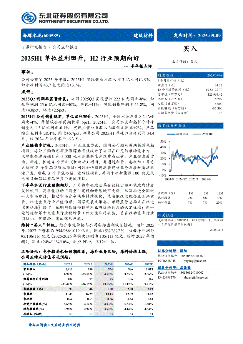 海螺水泥:东北证券-海螺水泥-600585-半年报点评:2025H1单位盈利回升,H2行业预期向好-250909