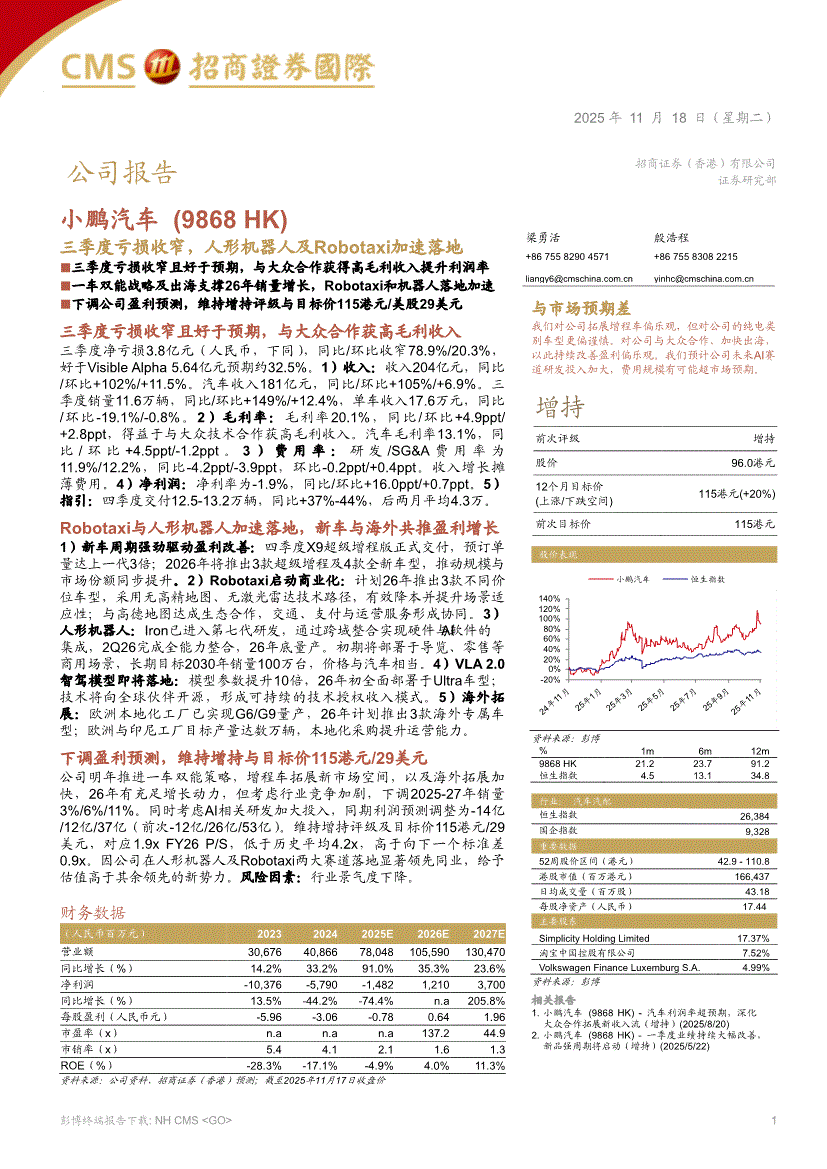 小鹏汽车:招商证券(香港)-小鹏汽车-9868.HK-三季度亏损收窄,人形机器人及Robotaxi加速落地-251118