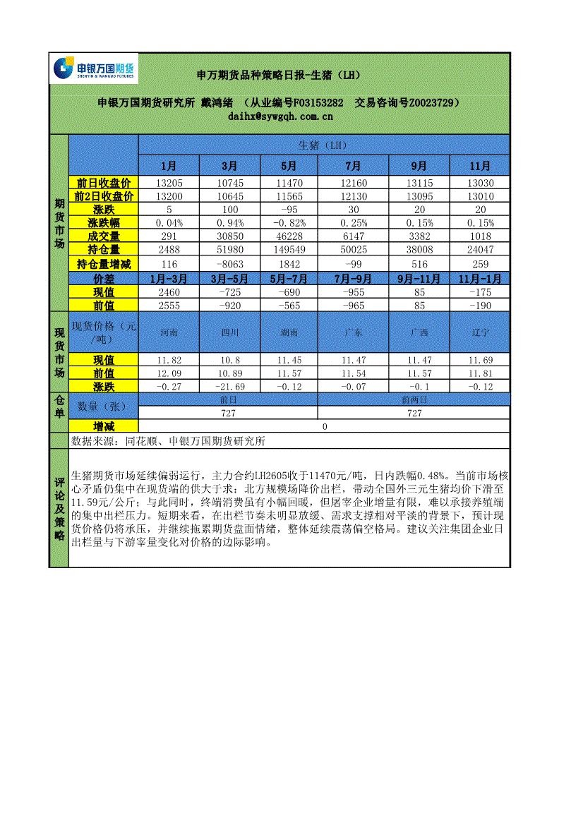 申银万国期货-品种策略日报:生猪(LH)-260211