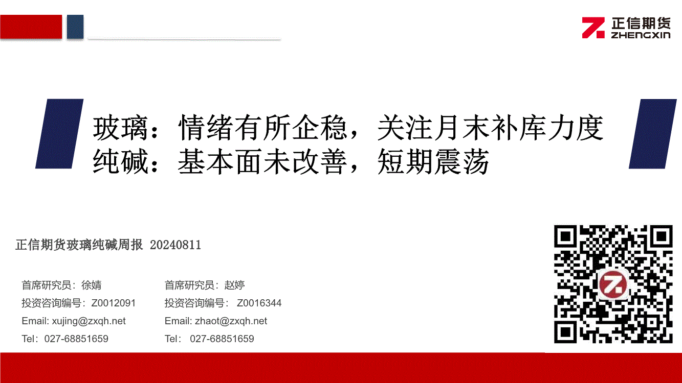 正信期货-玻璃纯碱周报:玻璃,情绪有所企稳,关注月末补库力度,纯碱,基本面未改善,短期震荡-250811