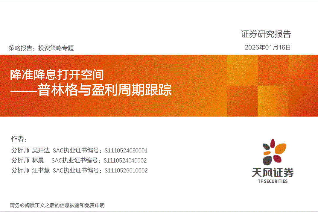 天风证券-普林格与盈利周期跟踪:降准降息打开空间-260116