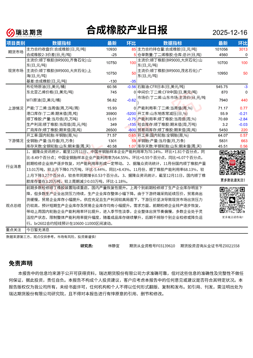 瑞达期货-合成橡胶产业日报-251216