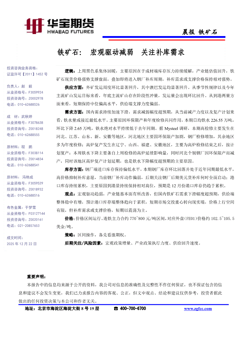 华宝期货-铁矿石:宏观驱动减弱,关注补库需求-251222