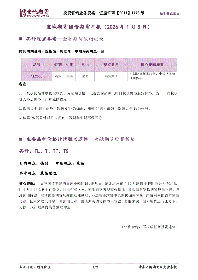 宝城期货-国债期货日报:国债期货震荡整理为主-260105