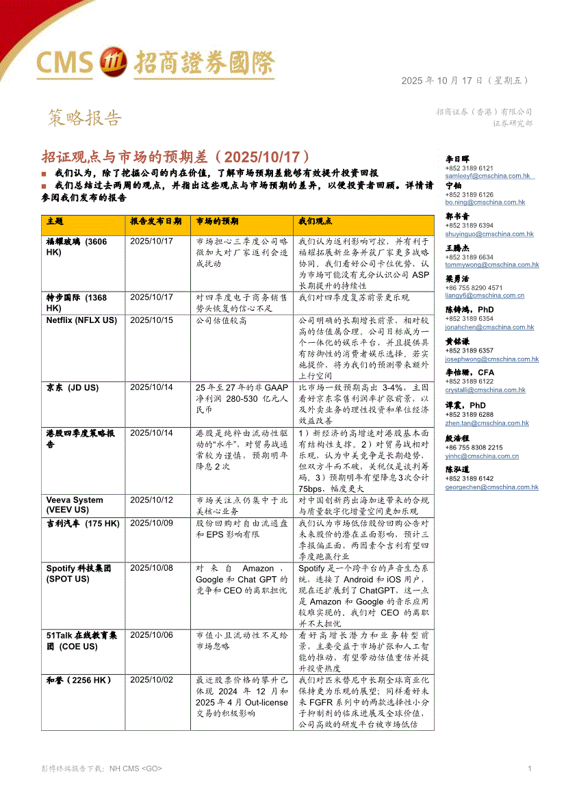招商证券(香港)-招证观点与市场的预期差-251017