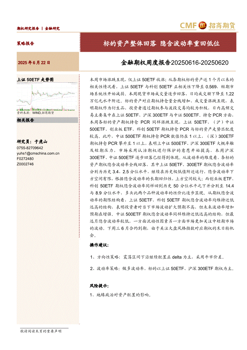 招商期货-金融期权周度报告:标的资产整体回落,隐含波动率重回低位-250622