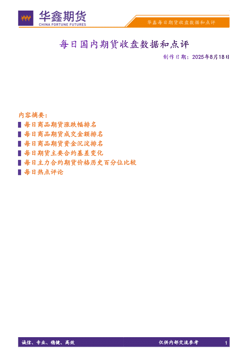 华鑫期货-每日国内期货收盘数据和点评-250818