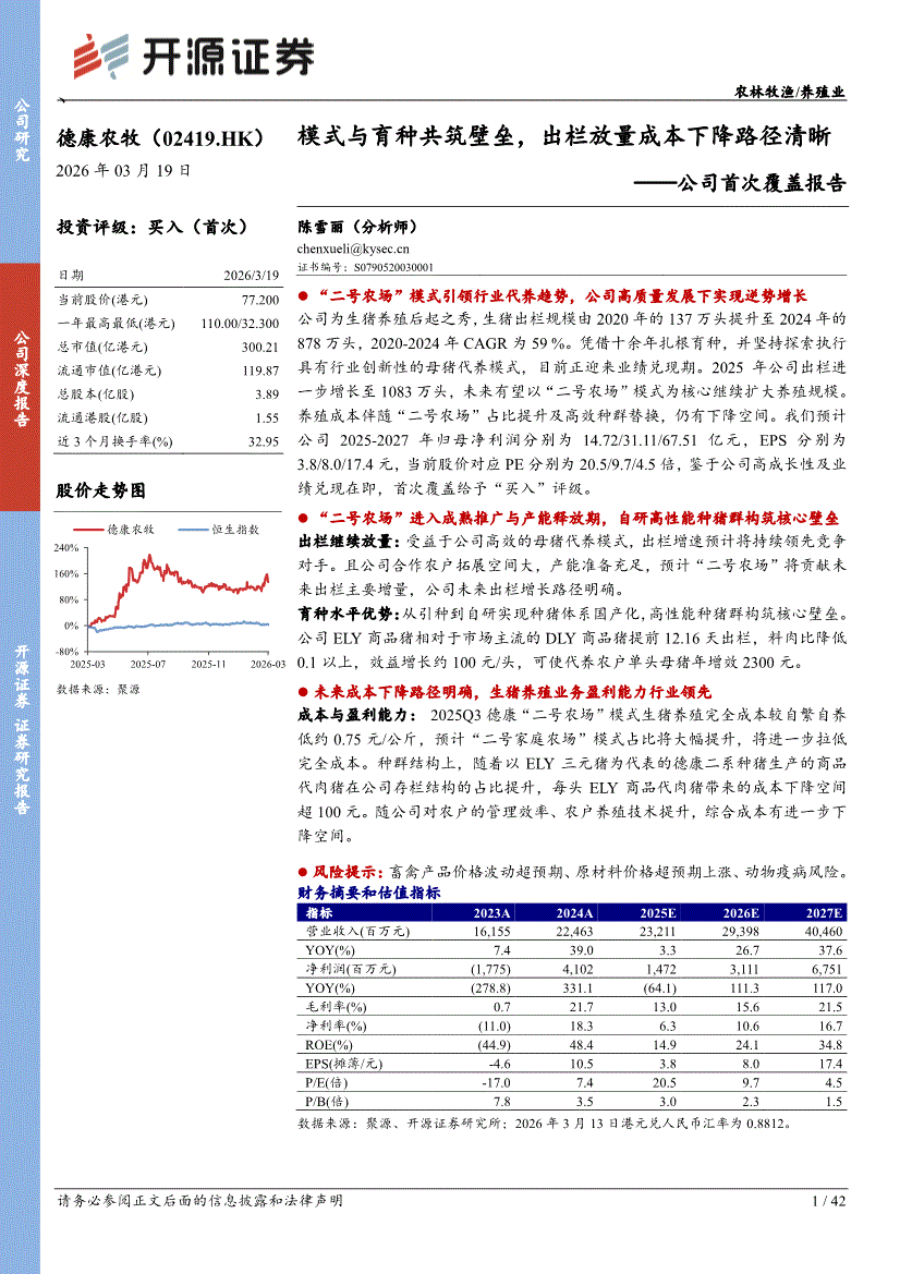 德康农牧:开源证券-德康农牧-2419.HK-公司首次覆盖报告:模式与育种共筑壁垒,出栏放量成本下降路径清晰-260319