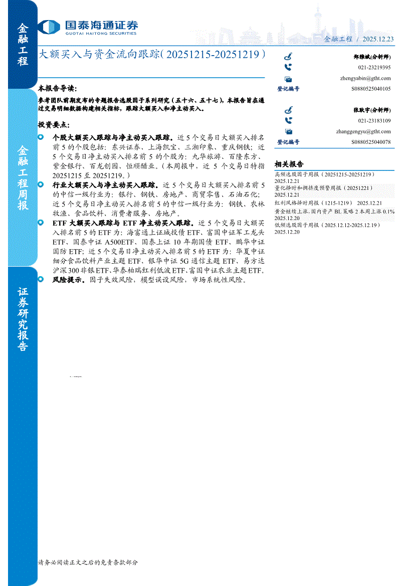 国泰海通证券-金融工程周报:大额买入与资金流向跟踪(20251215~20251219)-251223