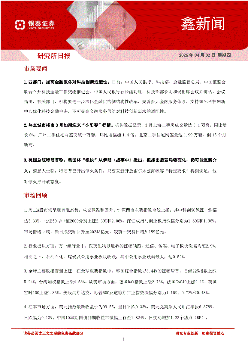 银泰证券-研究所日报:鑫新闻-260403