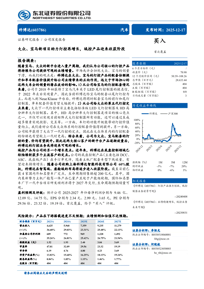 科博达:东北证券-科博达-603786-大众、宝马新项目助力灯控再增长,域控产品迎来收获阶段-251217