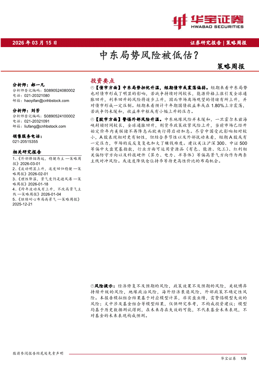 华宝证券-策略周报:中东局势风险被低估?-260315