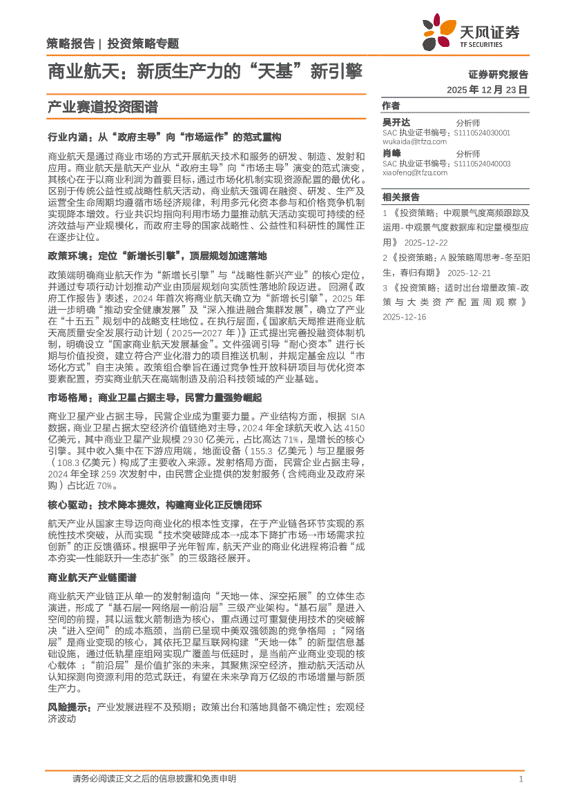 天风证券-产业赛道投资图谱:商业航天,新质生产力的“天基”新引擎-251223