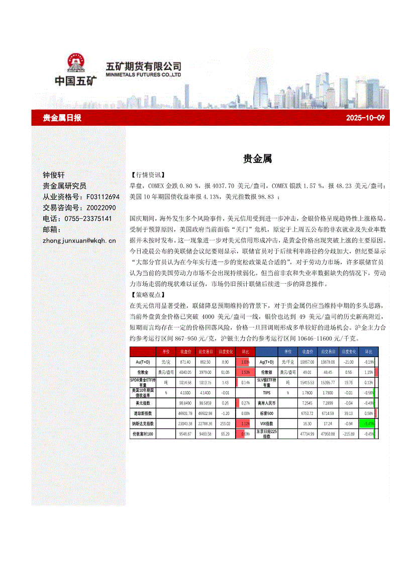 五矿期货-贵金属月报:现货驱动明显,等待价格充分回调-251010