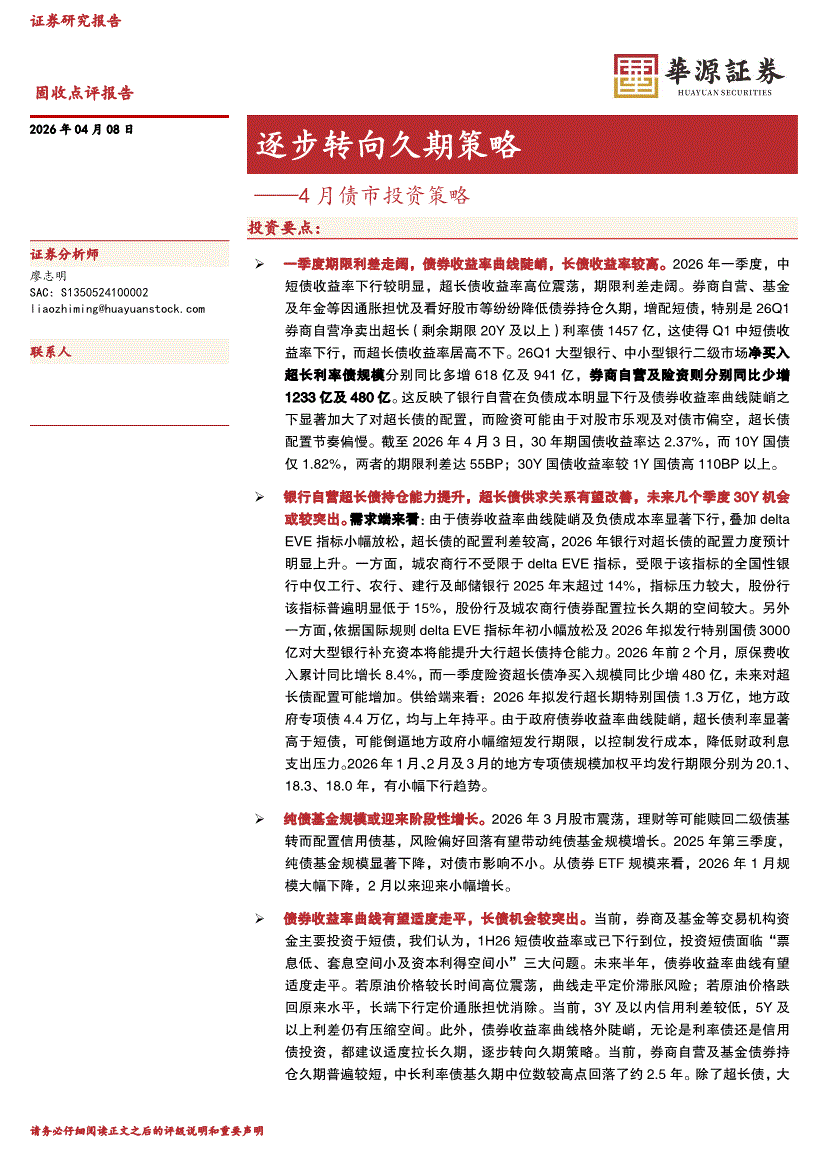 华源证券-4月债市投资策略:逐步转向久期策略-260408