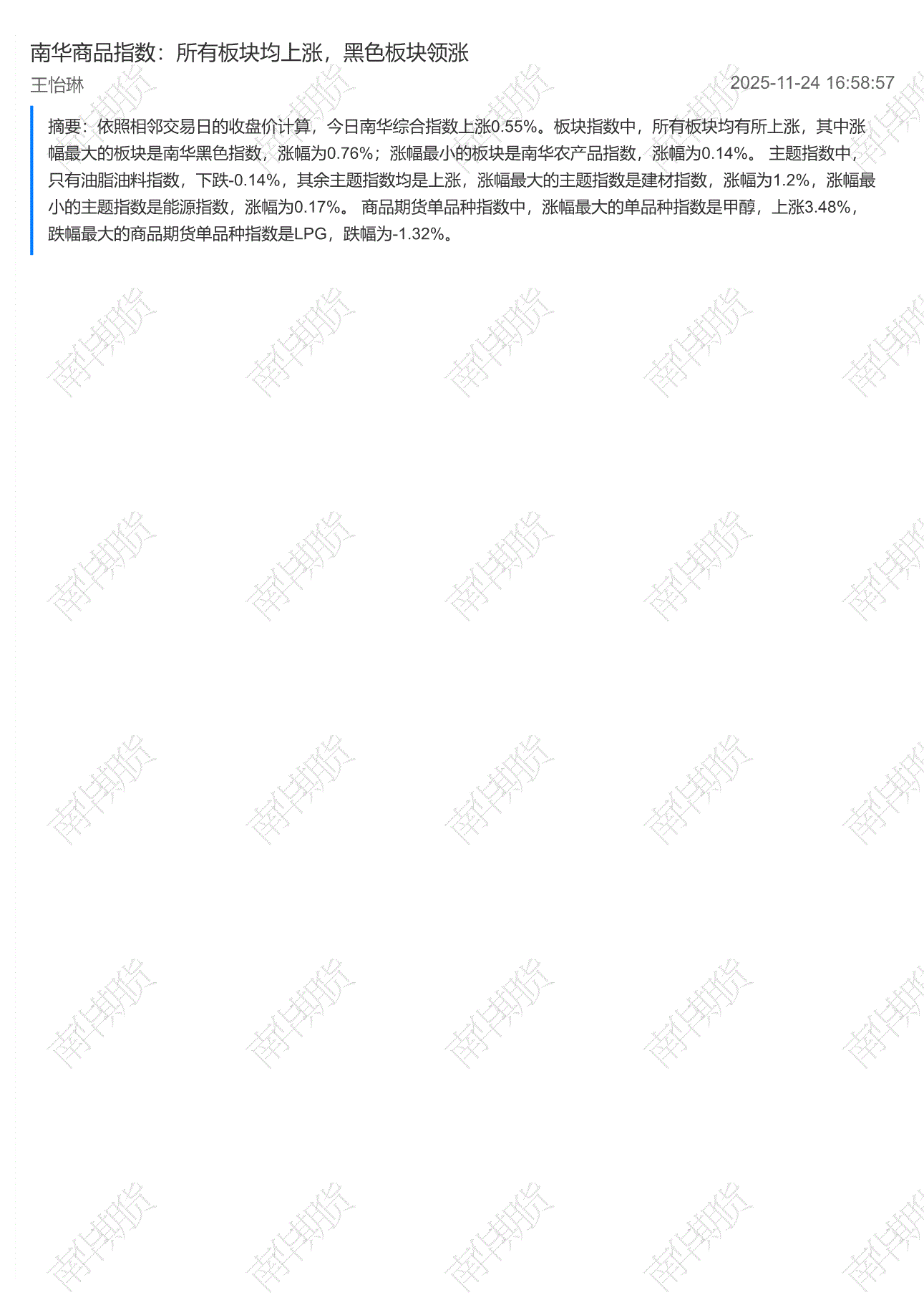南华期货-商品指数:贵金属板块领涨,黑色板块下跌-251119