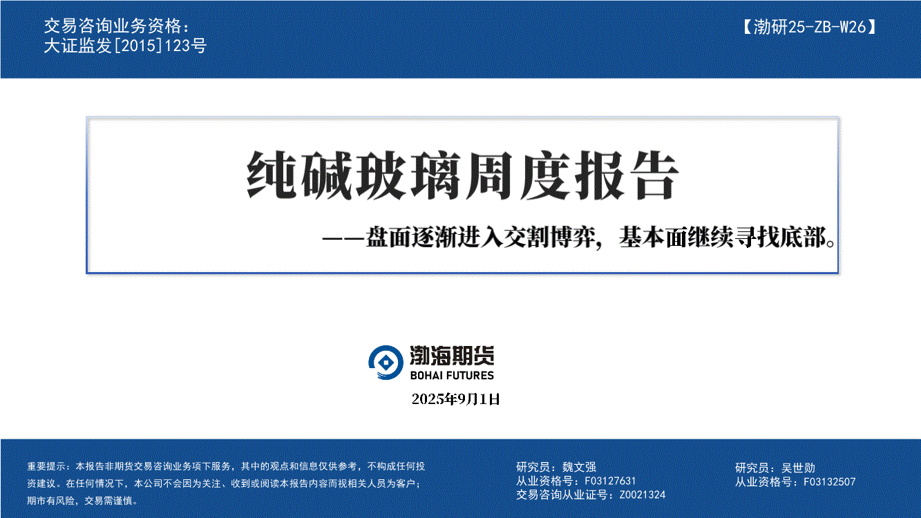 渤海期货-纯碱玻璃周度报告:盘面逐渐进入交割博弈,基本面继续寻找底部-250901