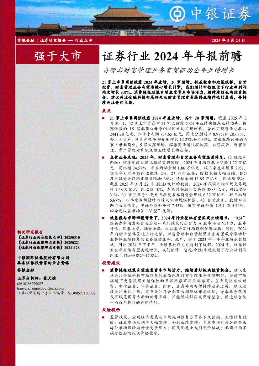 证券行业:中银国际-证券行业2024年年报前瞻:自营与财富管理业务有望驱动全年业绩增长-250324