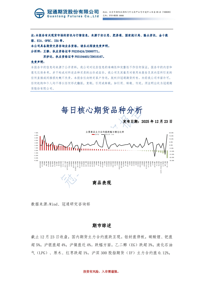 冠通期货-每日核心期货品种分析-251223