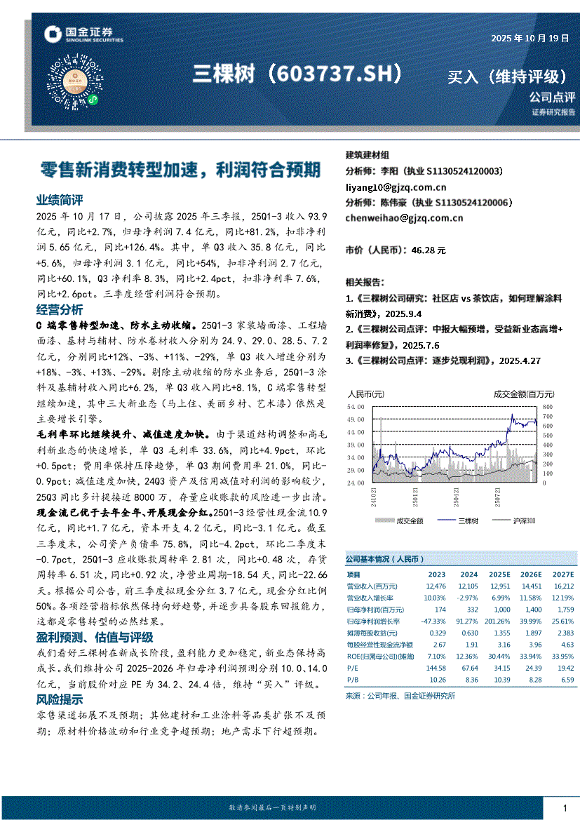 三棵树:国金证券-三棵树-603737-零售新消费转型加速,利润符合预期-251019