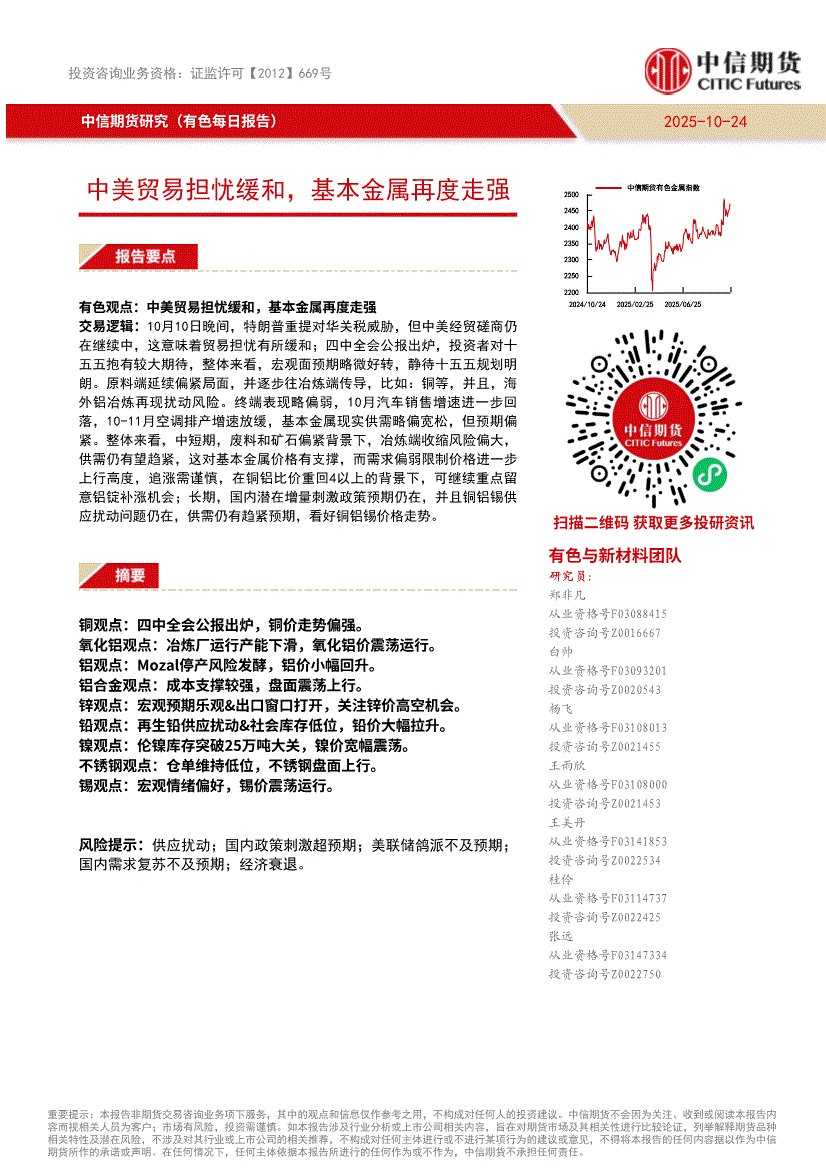 中信期货-有色每日报告:中美贸易担忧缓和,基本金属再度走强-251024