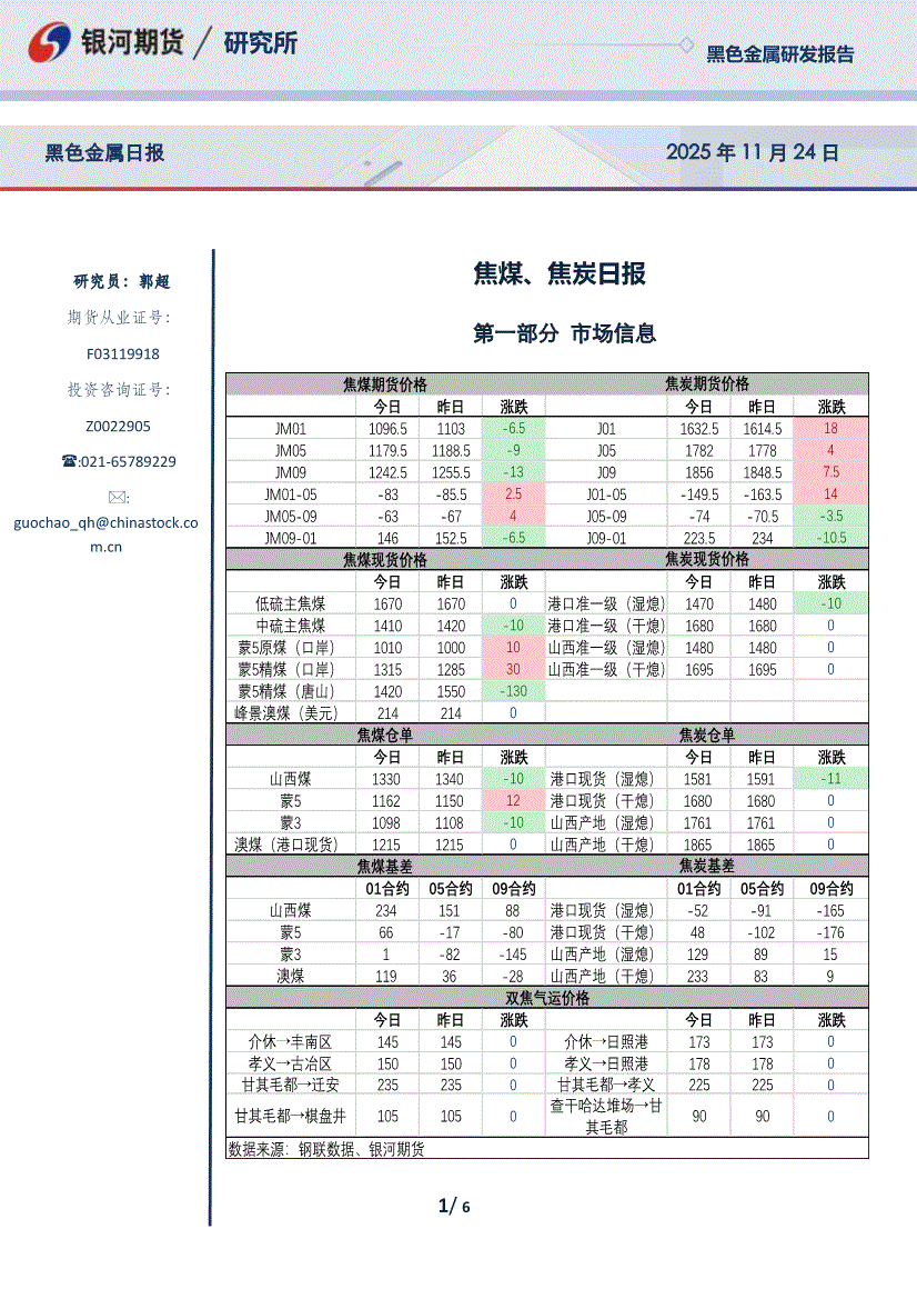 银河期货-双焦:底部有支撑,等待新的驱动-251114