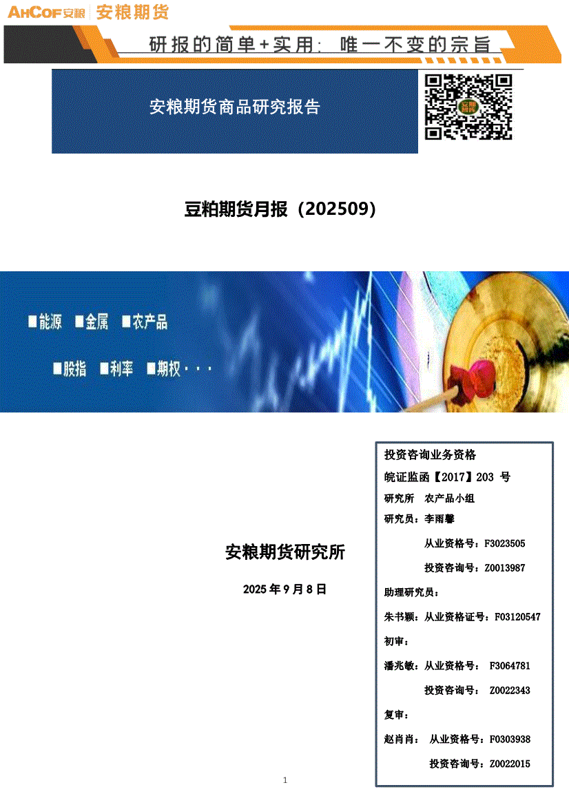 安粮期货-豆粕期货月报(202509):进口成本支撑,期价或震荡偏强-250908