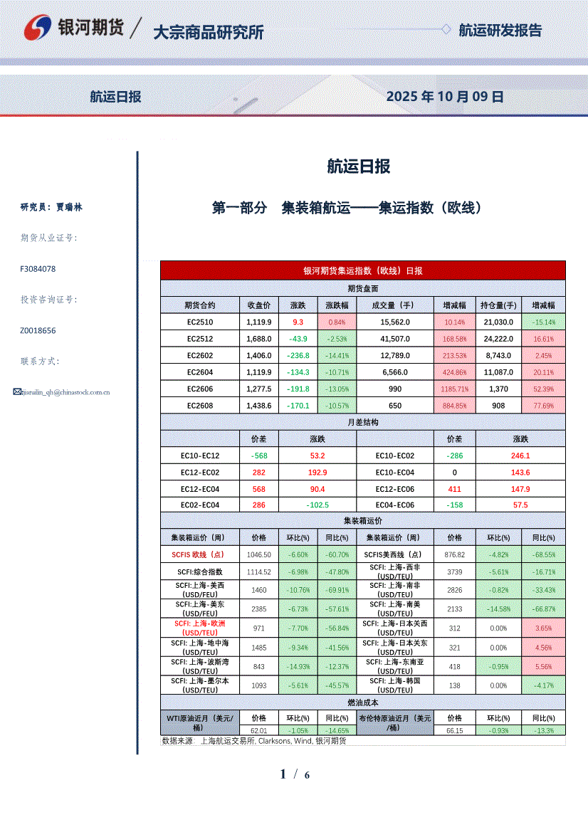 银河期货-集运指数(欧线)月报:现货运价延续跌势,船司提前开启旺季宣涨-250926
