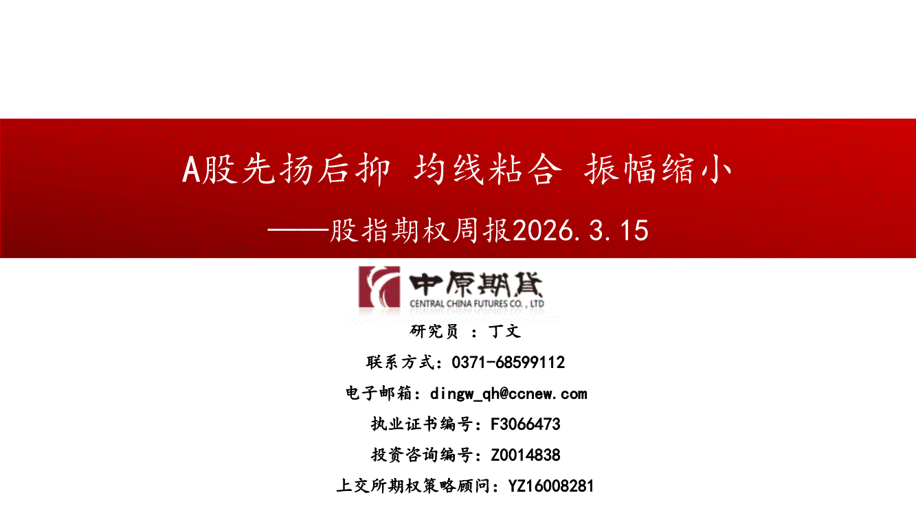 中原期货-股指期权周报:A股先扬后抑,均线粘合,振幅缩小-260315